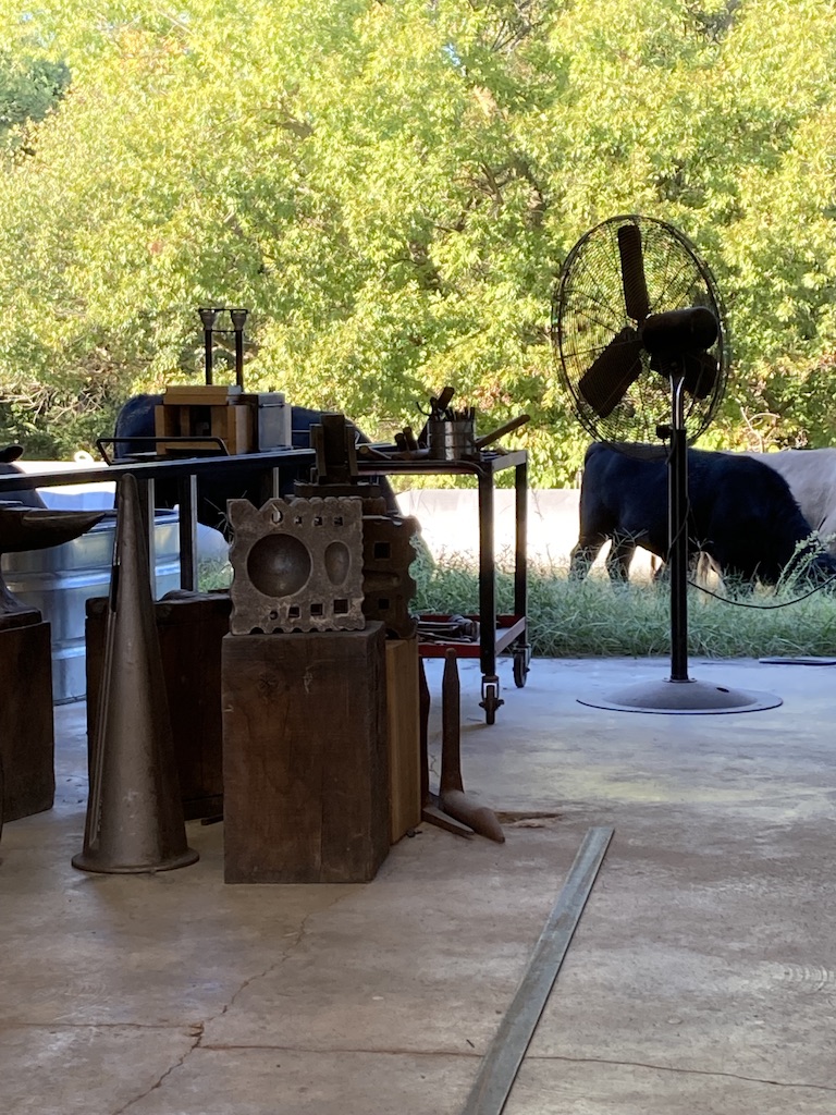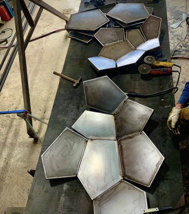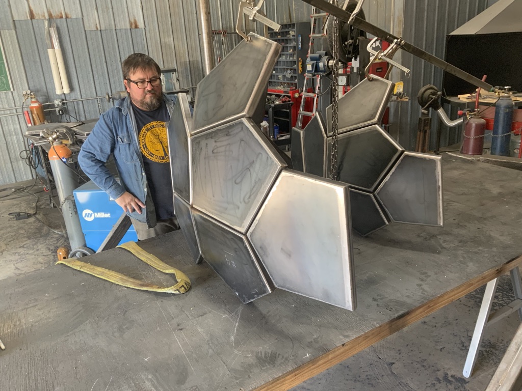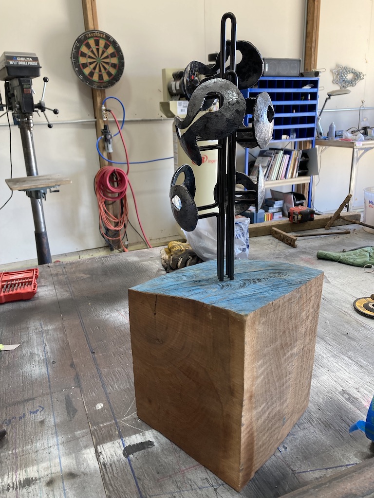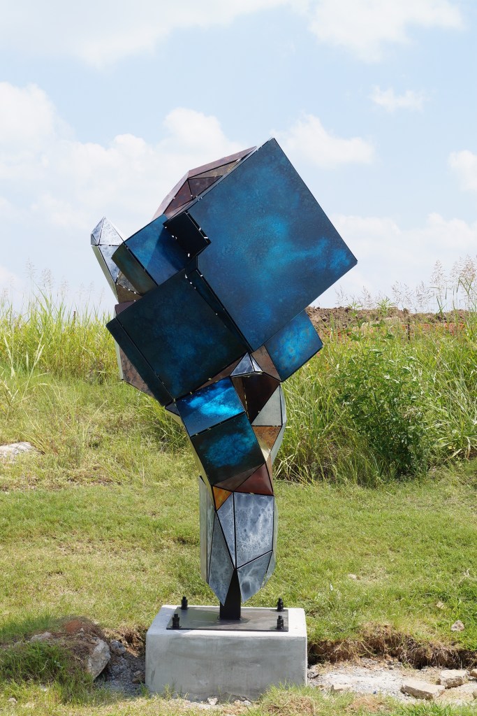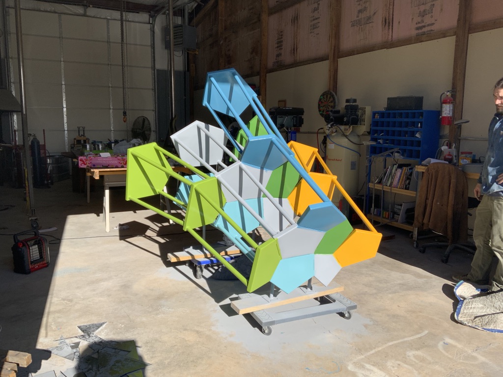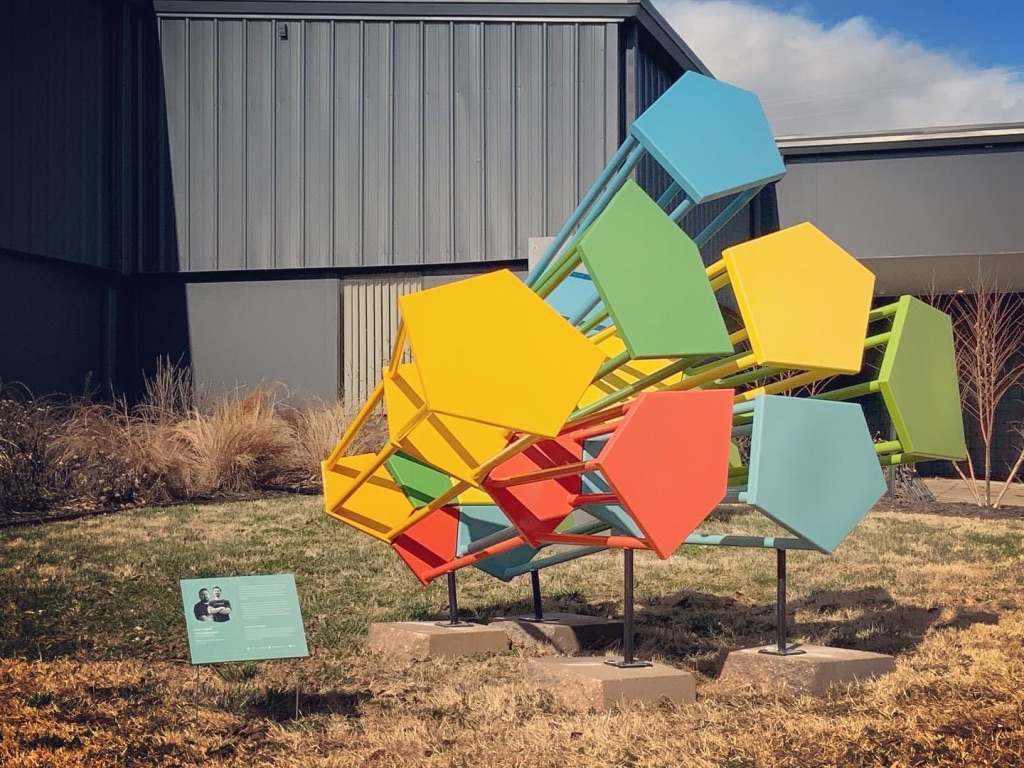 “Fluorite, Bauxite, and Quartz”. Public sculpture in Ft. Smith, AR. Fabricated steel with patina, paint, and clearcoat. Done in conjunction with Alex Cogbill.
